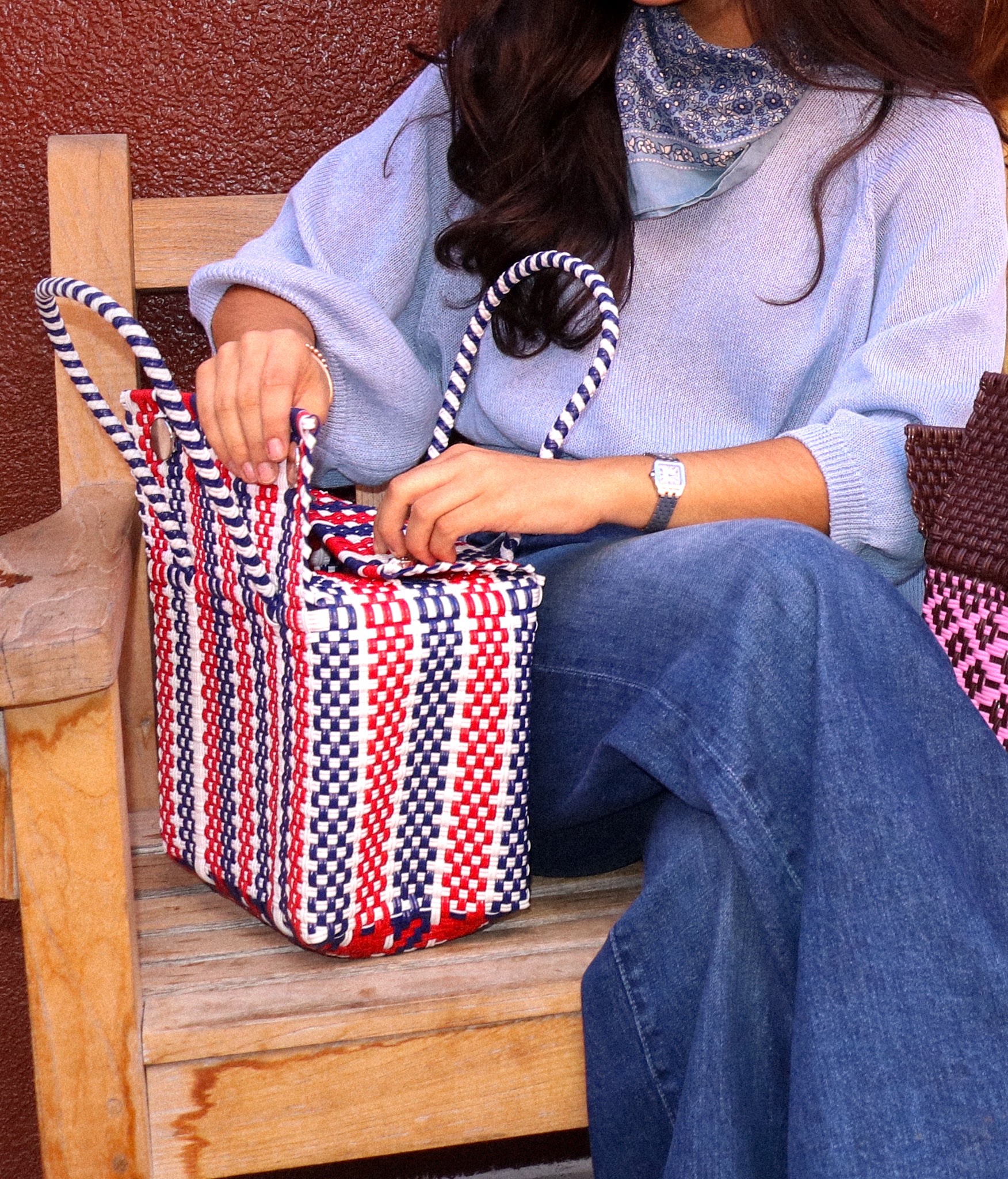 Our Bravo Tote weaves together red and navy blue for the perfect look for any season. Our medium, closable silhouette offers both structure and versatility. Handwoven with care, designed to stand out effortlessly.