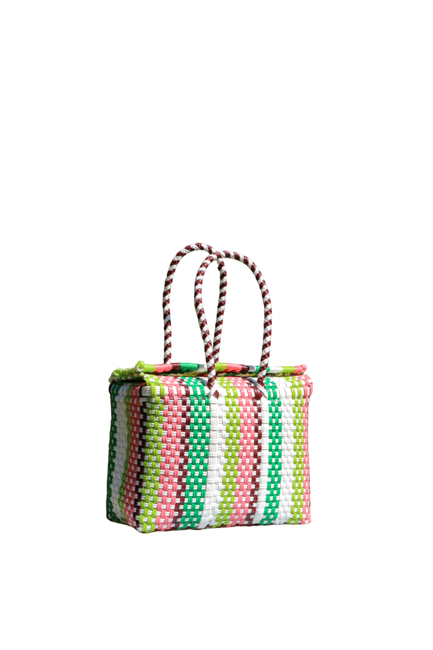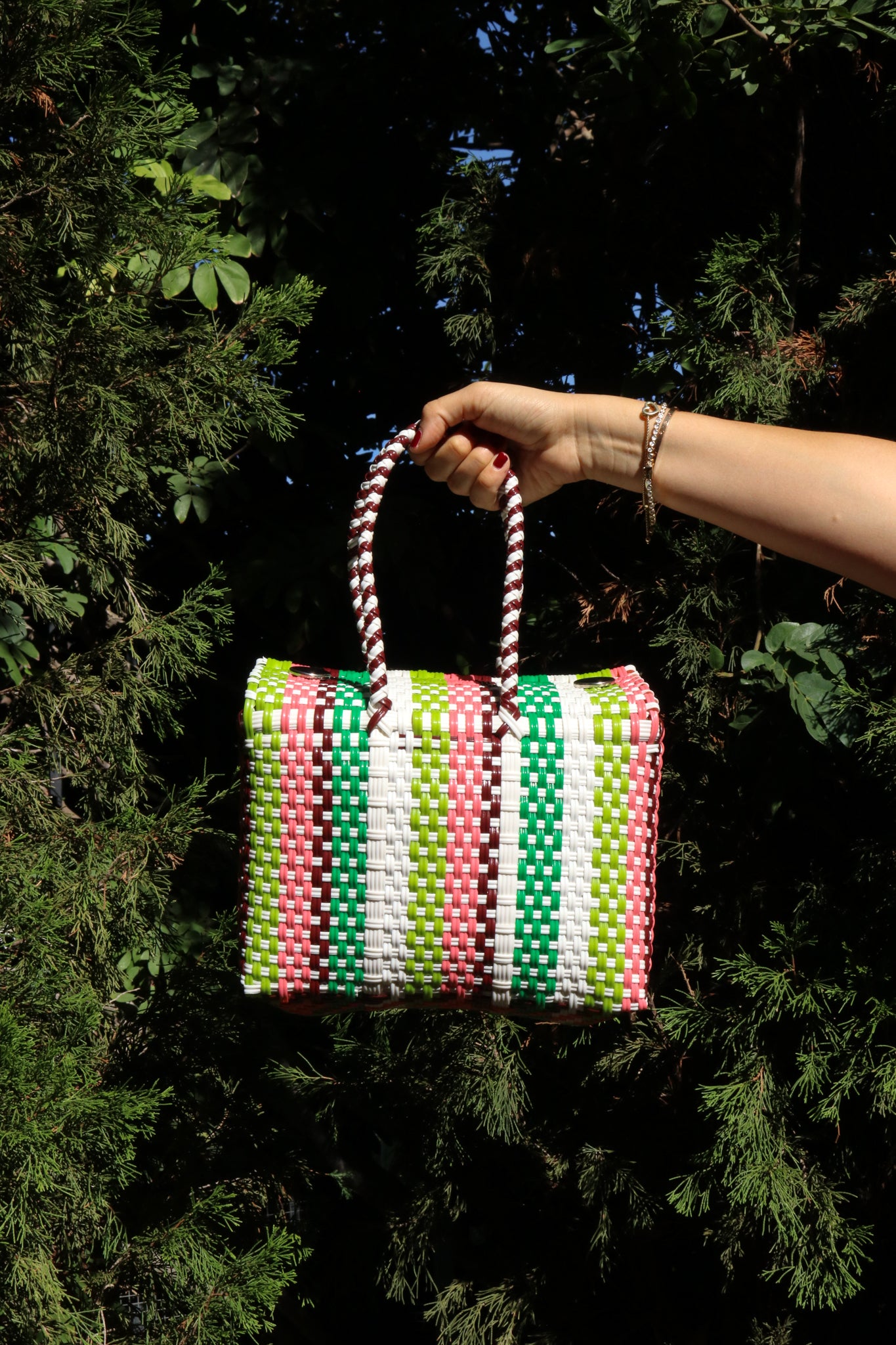 Green and Pink Striped Recyclable Plastic Tote Bag