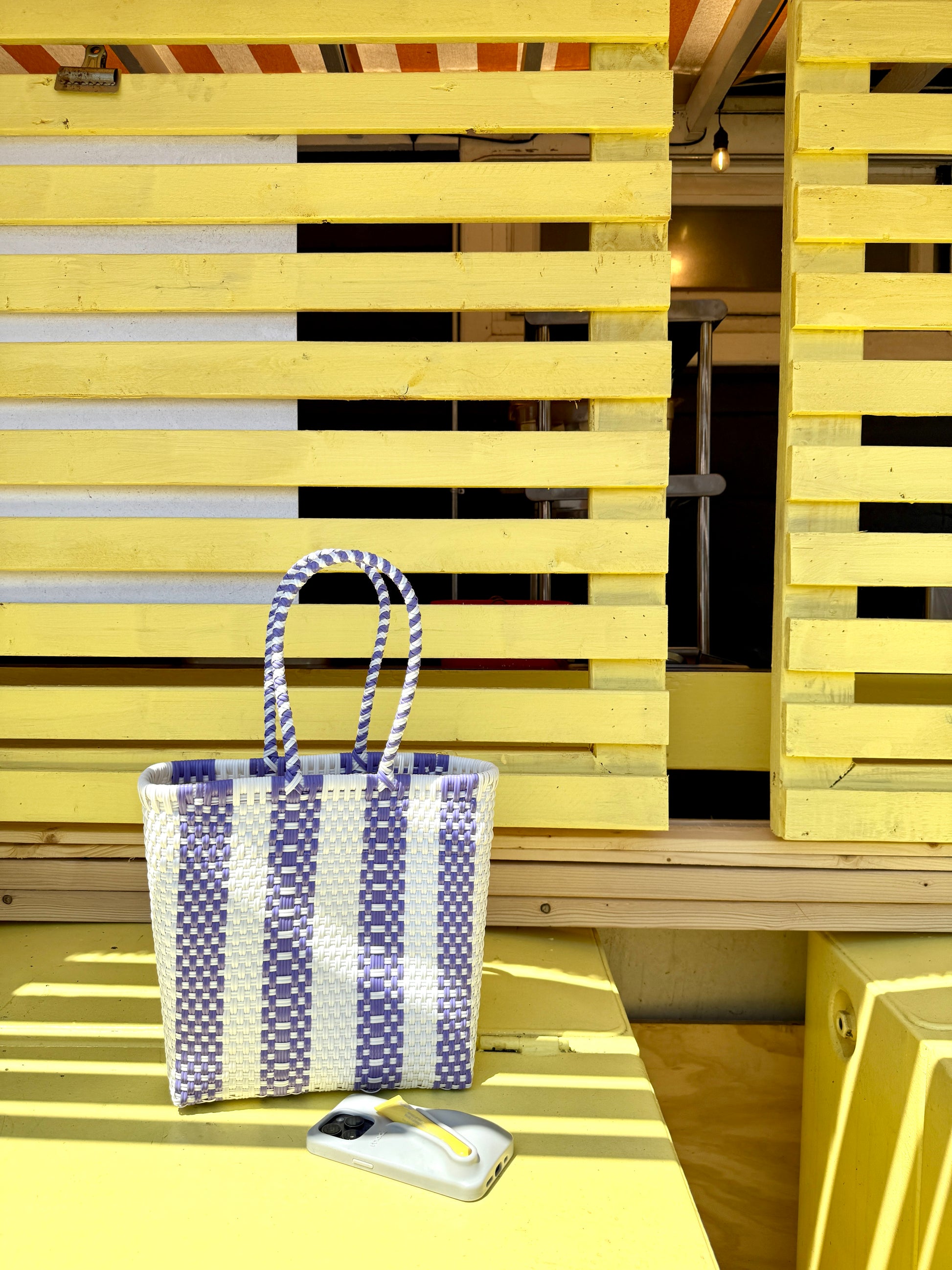 Purple and White Striped Recyclable Plastic Tote Bag